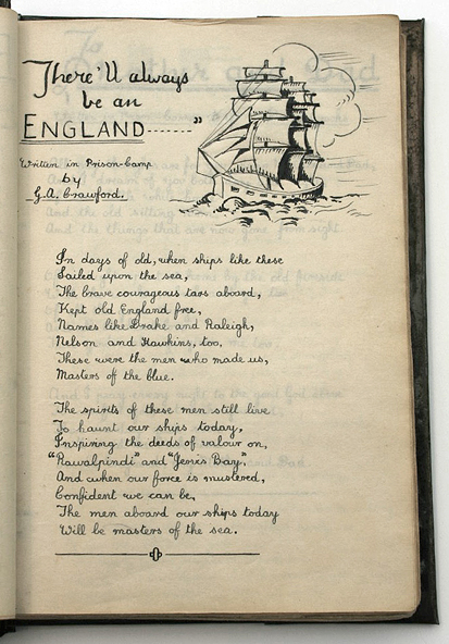“There’ll always be an England….” by G.A. Crawford is one of two works by this soldier-poet in Robert Dickinson’s journal, “Servigliano Calling.”