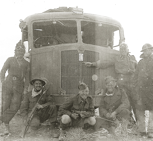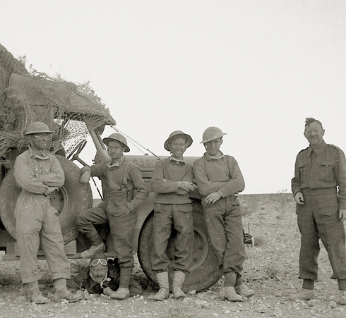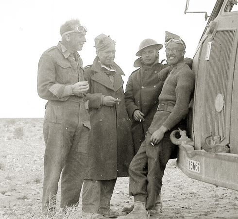 Norman (first left) and his army colleagues occupy themselves deep in the Libyan desert, circa 1940–41.