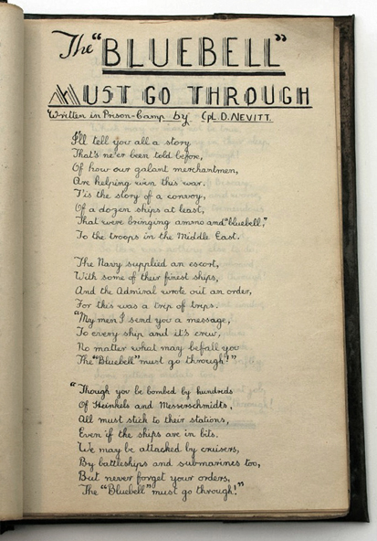 “The ‘Bluebell’ Must Go Though” is one of eight poems by Cpl. D. Nevitt recorded in Robert Dickinson’s prison camp journal.