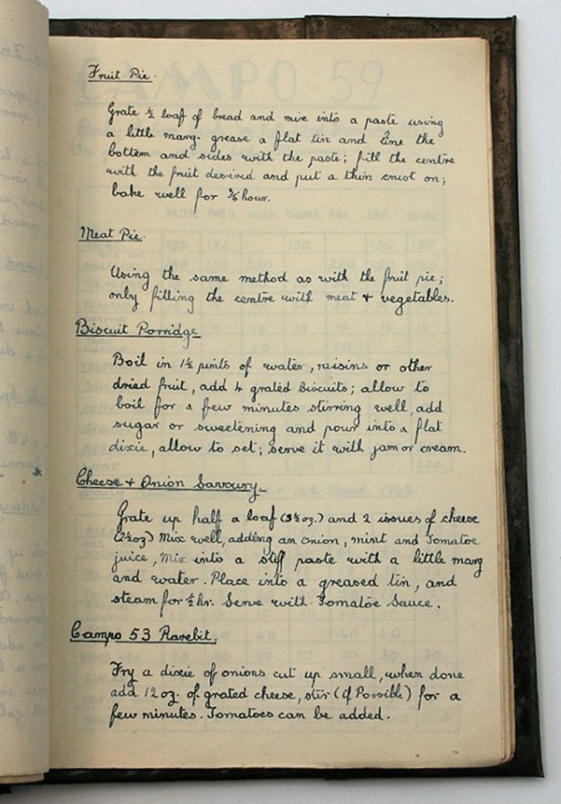 Although Robert titled this section of his journal “Campo 59 Cookery,” the last recipe, “Campo 53 Rarebit,” is evidence that the culinary experiments continued after his transfer to Camp 53 Sforzacosta in January 1943.