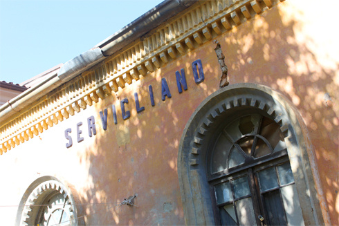 Train passengers arriving in Servigliano disembarked beneath this sign.