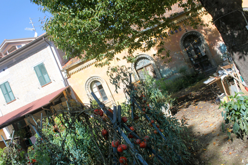 Tomatoes and other vegetables grow in a garden between the old station and Via Amendola, which runs along the northwestern wall of the camp.