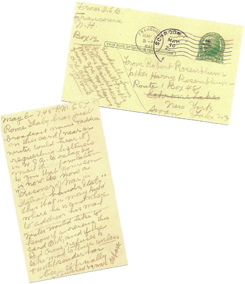 In May 1943, Sergeant Albert Rosenblum’s family received a host of these cards from shortwave listeners around the U.S. The writers reported they had heard Albert’s name and his home address broadcast from Rome.