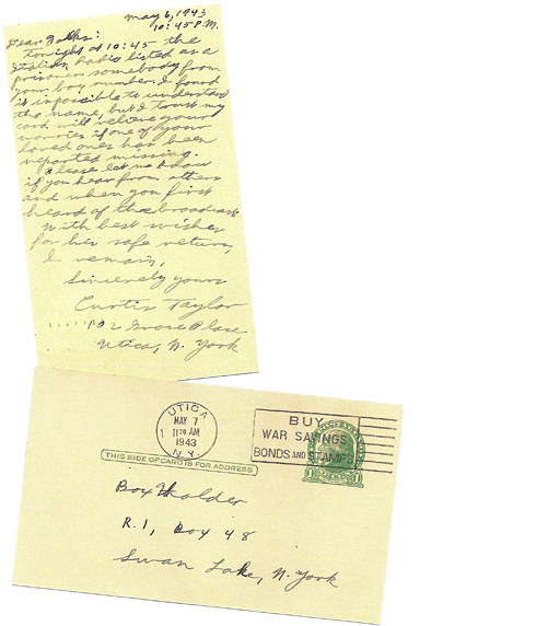 (The name Shroon Lake is crossed out and above the address is written “Try Swan Lake N.Y.” In fact a town called Shroon Lake does exist, for the front of the card bears its postmark.)