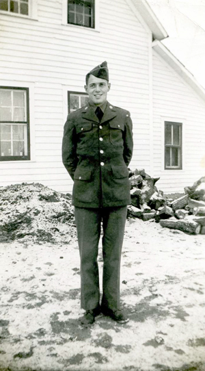 Willman King, late fall 1945. The photo was taken in front of the farm home where he worked before WW II.