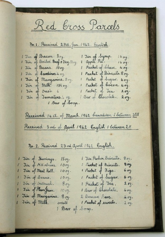 “English, Canadian and also New Zealand Red Cross sent to POWs various parcels some that contained clothes, tobacco and other necessities but the most important ones were food parcels that helped POWs to survive with the meagre Italian rations. Parcels coming from Canada and New Zealand were the richest as in those countries there was no food rationing such as in England that was under the constant threat of German bombing.