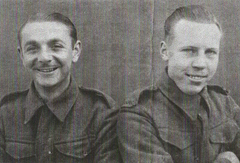 At left, Stanley Thomas Dunn, 5th Battalion Royal Tank Regiment; at right, James (Jimmy) Peters, Royal Army Medical Corps. Photo taken in Camp 59, Servigliano.
