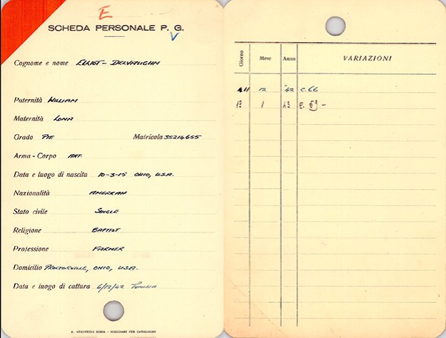 Access to identity cards of American POWs of the Italian Army is now available on the website of the U.S. National Archives. Shown here is the front and back of the card for Delvaughn Elliot.