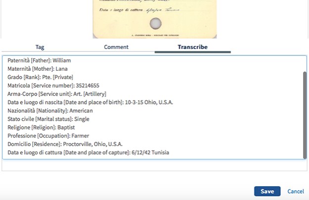 You will be presented with options to 1) tag the image, 2) add a comment, or 3) transcribe the contents of the card.