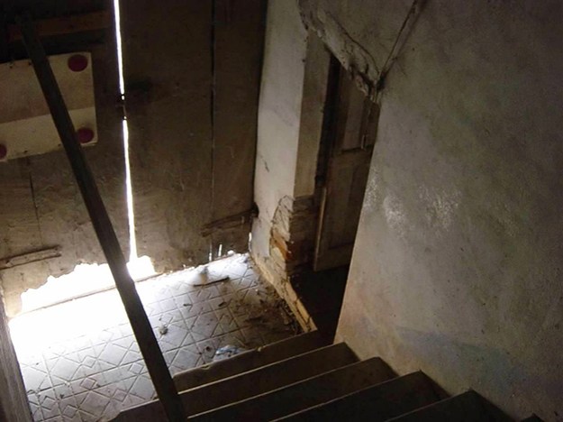 Interior of the barn beneath the house, where Luther slept