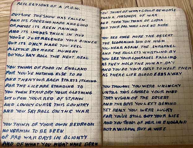 Reginald Skinner’s prison camp notebook contains seven full-length poems. (See “Reginald Skinner—P.G. 59 and Beyond.”)