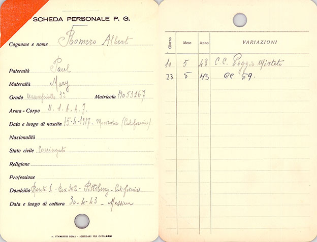 The following information is from their POW repatriation reports prepared by MIS-X Section, POW Branch, of the U.S. War Department. The reports are courtesy of the United States Air Force Historical Research Agency (AFHRA), Maxwell Air Force Base, Montgomery, Alabama. Their reports contain a wealth of information, including the names and addresses of Italian helpers.