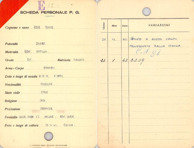 Data e luogo di cattura [Date and place of capture]: 23 December 1942, Tunisia