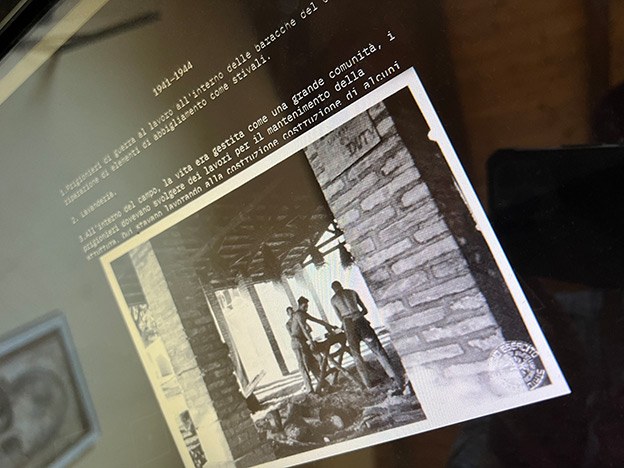 On the walls of one room are photographs that are divided into different periods of the camp’s history—POW internments, Nazi internment of Italian and foreign Jews awaiting deportation to Germany, and temporary housing for Slovenian refugees and later for refugees from Julia and Dalmatia.