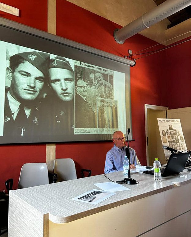 Next up was a talk by Steve Dickinson about his uncle Robert Dickinson and Robert’s remarkable prison camp diary Servigliano Calling. After his talk, Steve formally presented the diary in memory of his uncle to the Casa della Memoria archive/museum.