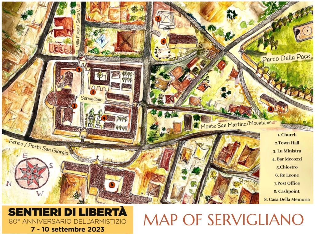 This is the second of four posts concerning the 2023 “Paths to Freedom” (Sentieri di Libertà) event in Servigliano, Italy. The event was a celebration of both the 80th anniversary of the Italian Armistice and the subsequent breakout of thousands of Allied POWs from camps across Italy—including camp PG 59 in Servigliano.