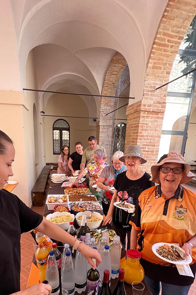 A delicious lunch prepared by Bar Lu Ministru was served in the open courtyard of the Servigliano town hall. The meal was courtesy of Casa della Memoria.
