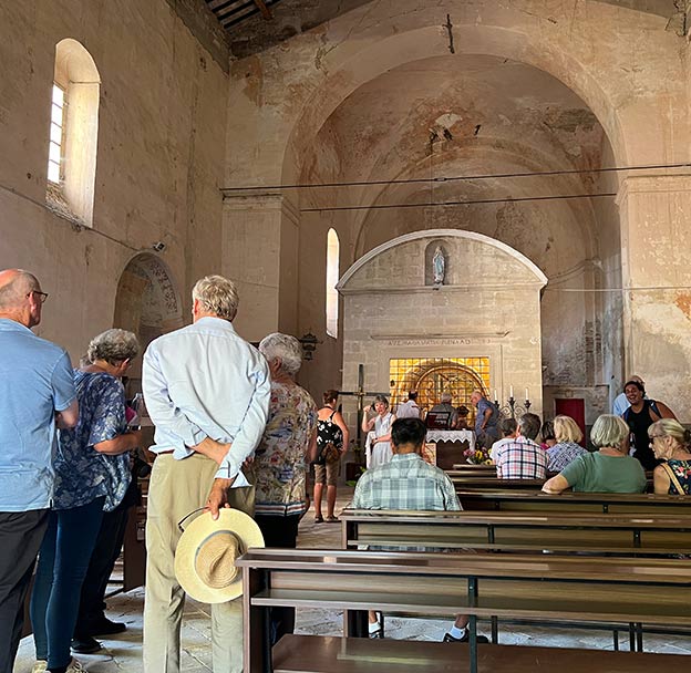 We visited the Church of Santa Maria in Camurano, which is a short walk from where Sidney lost his life. The structure dates to around 1549, when an older primitive roadside chapel was enclosed with sandstone walls and a protective roof. The chapel-sanctuary is built on a rectangular base and has a barrel-vaulted ceiling; its votive frescoes date to the 16th century.
