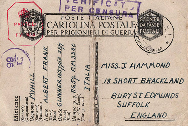 Albert Myhill was not soon to return to England and his beloved Joyce. Records show he was transferred to the work camps of PG 146 in northern Italy; after the Italian Armistice in September 1943, he found himself a prisoner of the Germans in Stalag IVB Muhlberg.