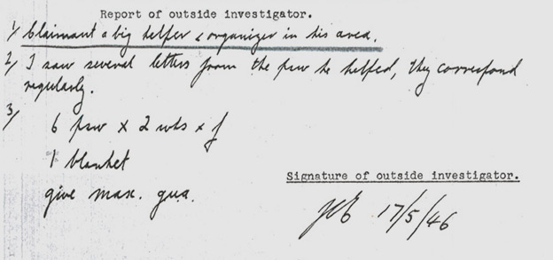 2/ I saw several letters from the PsW [prisoners of war] he helped, they correspond regularly.