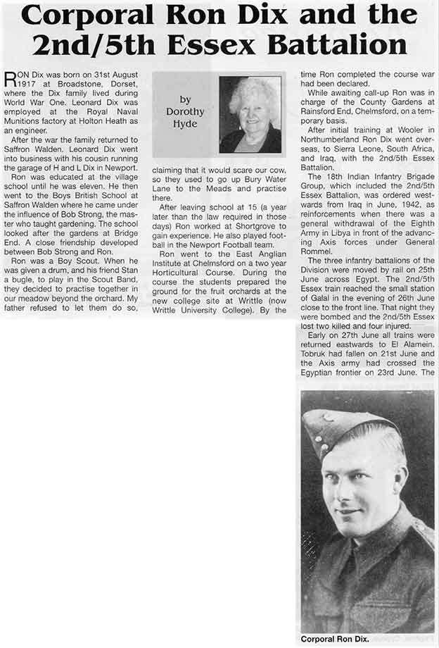 Corporal Ron Dix and the 2nd/5th Essex Battation