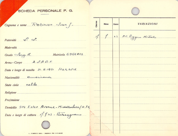 Data e luogo di cattura [Date and place of capture]: 17 July 1943 Pontcagnano [Pontcagnano Faiano, Salerno]