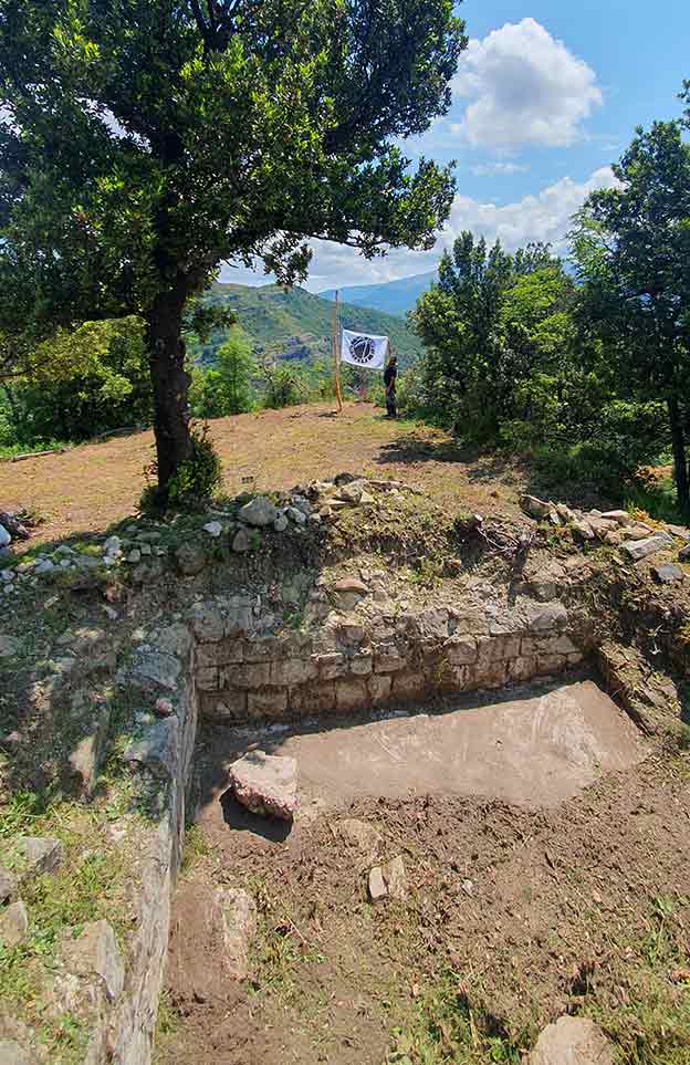 “The site can be reached by a somewhat demanding climb and is rarely visited. The area, which had been covered by scrub, has been cleared of the brush by the association Le Ville sul Tufo without carrying out any type of excavation. The surviving structures consist of a wall overhanging the cliff and a small room constructed of squared stones bound with mortar.