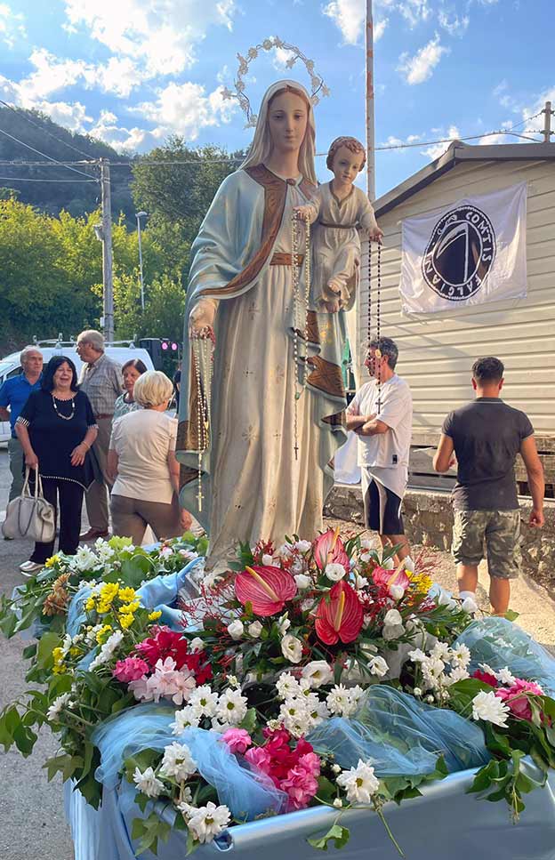 The patron saints of Falciano are the Madonna del Rosario (Our Lady of the Rosary) and San Martino. In Italy, processions featuring the carrying through the streets of the figures of saints are an important part of religious celebrations, particularly on a saint’s feast day or during Holy Week.