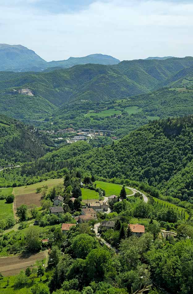 Le Ville sul Tufo president Giuseppe Gagliardi has researched and written about the history of the medieval castle that once perched high over Falciano. In a paper on this topic, written in Italian, he explains: “Falciano is a hamlet of the municipality of Acquasanta Terme in the province of Ascoli Piceno. In the Middle Ages the place names for this area varied: Falcianum, Fazzano, Fazano.”