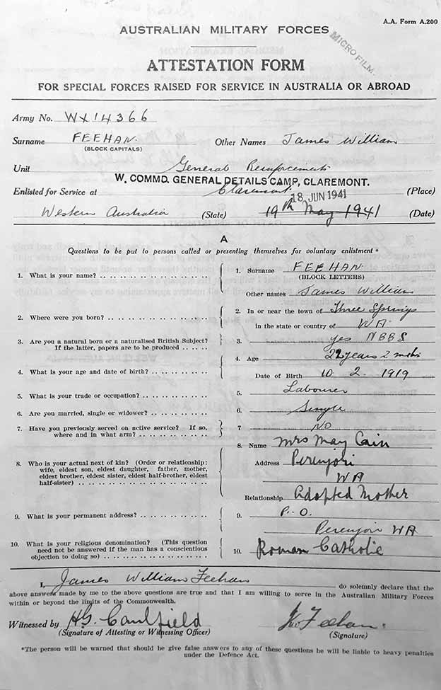 Jimmy enlisted on 18 June 1941 and served in the 2/32 Infantry Battalion of the Australian 9th Division, which saw action in North Africa in 1942. Jimmy’s military record notes he was reported missing in action 17 July and officially confirmed a POW on 22 October 1942.