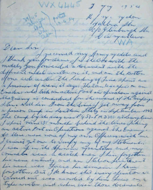 “I have also looked at the only known and Official War Office Roll of NZ POWs held in Italian camps, a roll prepared between April and June 1943. It lists each POW by camp of imprisonment. There is not one NZ POW listed as being at PG 59, in fact PG 59 is not mentioned anywhere in the document.