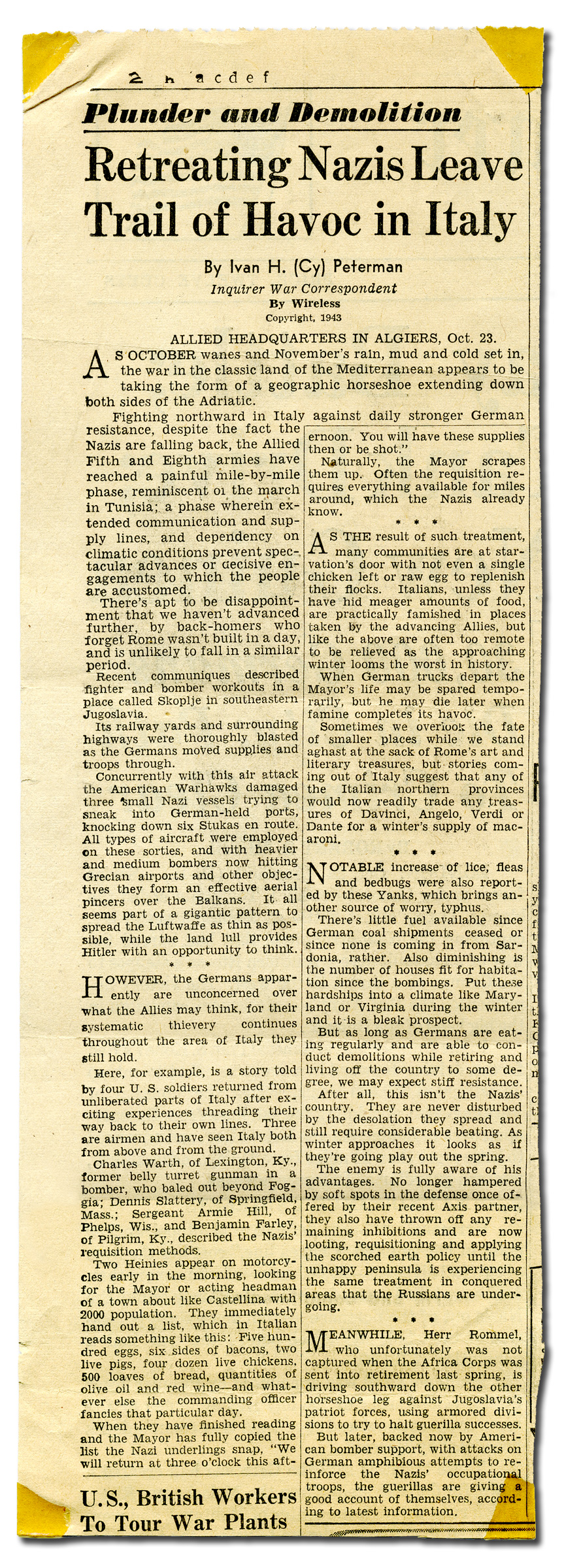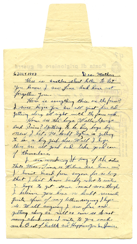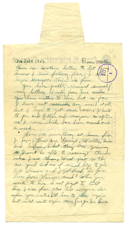 In presenting his story here, I’m rely on these taped accounts, as well as letters he sent home, the notebook he kept while a prisoner, and other documents he saved over the years.