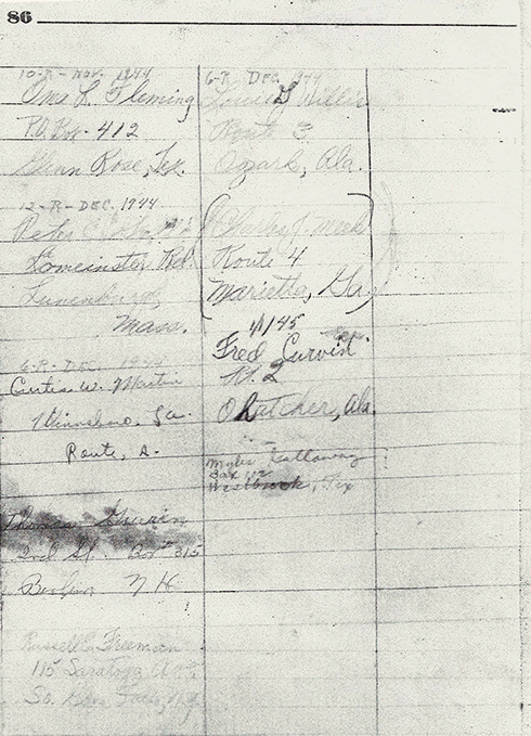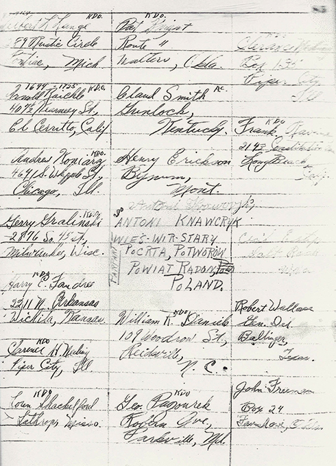While in the Italian and German camps, Clifford accumulated a long address list of men he met. The list is comprised of nine full pages.