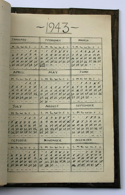 This 1943 Stalag 4B photo of Ralph Hoag was originally attached to his prison record. The prisoners took their own records from the office at Luckewalde after the Russians liberated the camp.