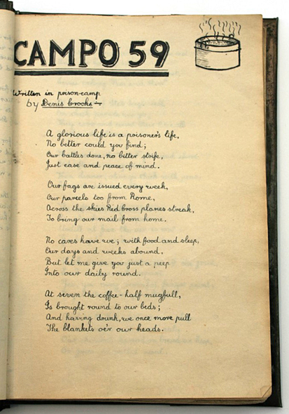 In the drawing above this poem, an ode to the evening “brew,” by Cpl. D. Nevitt, a camp cookstove, or ‘blower,’ is shown in remarkable detail.
